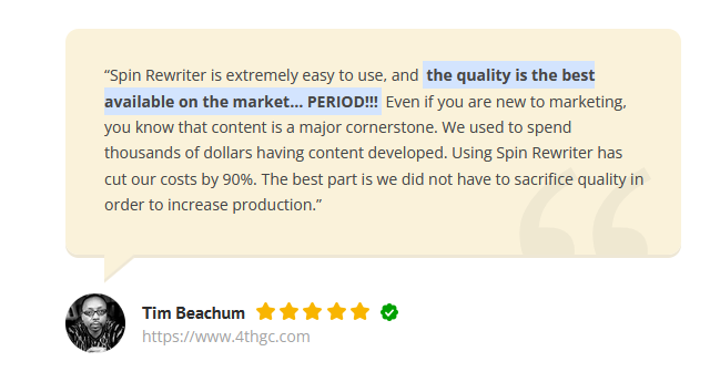 "The difference between basic spinners and advanced tools like Spin Rewriter is analogous to the difference between translation dictionaries and human translators. One substitutes words; the other understands meaning." - Common perspective among content marketers is that Spin Rewriter is a great tool for efficient content creation.